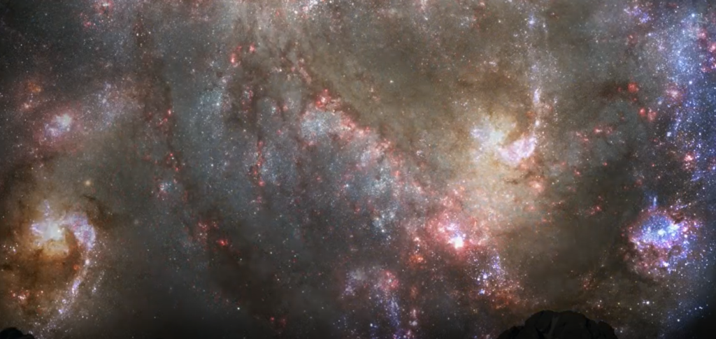 Space is the vast expanse beyond the Earth’s surface. With the naked eye, humans can observe celestial objects such as the Moon, the planets of the solar system, and the stars of the Milky Way galaxy. Through telescopes, observation extends far beyond the Milky Way, revealing other galaxies, as well as galaxy groups, clusters, and superclusters—large gravitationally bound systems containing hundreds or thousands of galaxies.